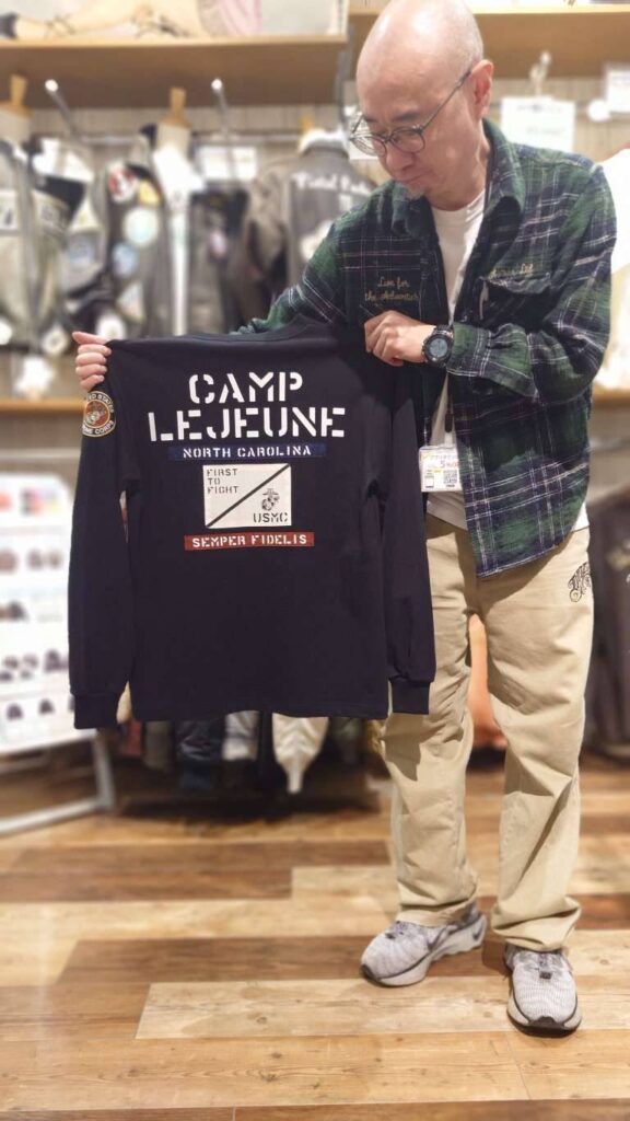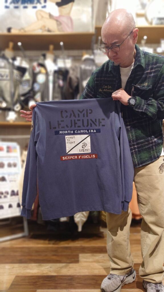 左胸にはステンシルプリント 、背中にはプリントとトリコロールカラーのパッチで星条旗をイメージ 、バランスの良いシルエット です。