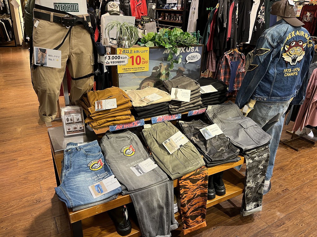 本日よりスタートのイベントに合わせまして、ただいま伊勢崎店で販売中のボトムをまとめてご紹介!