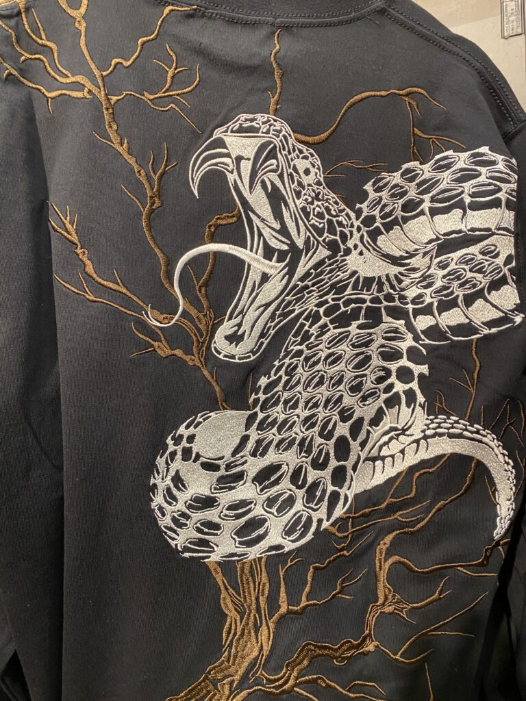 和柄 スジ彫り刺繡ロンTが入荷しています。