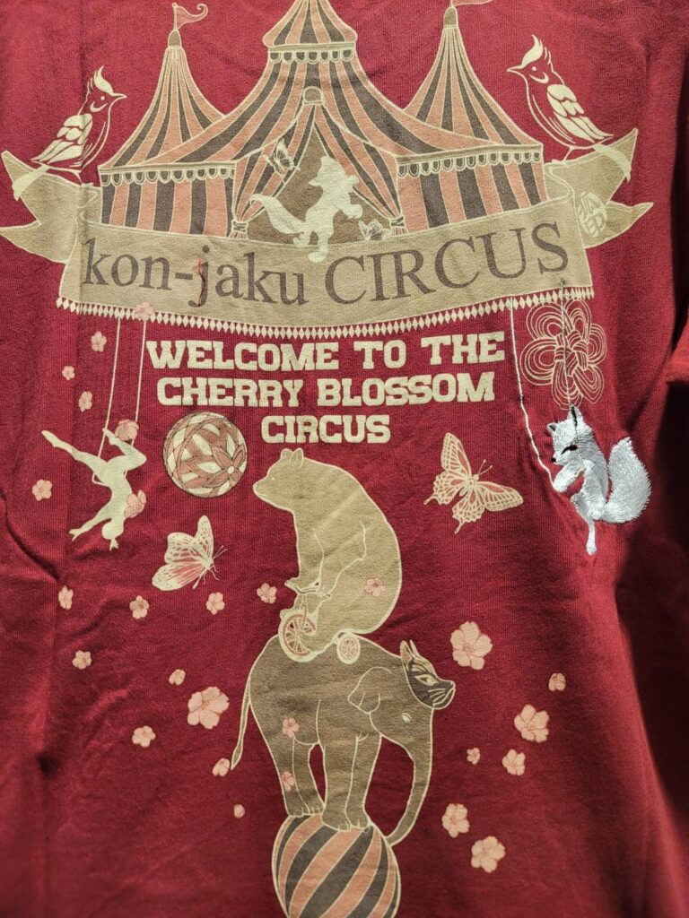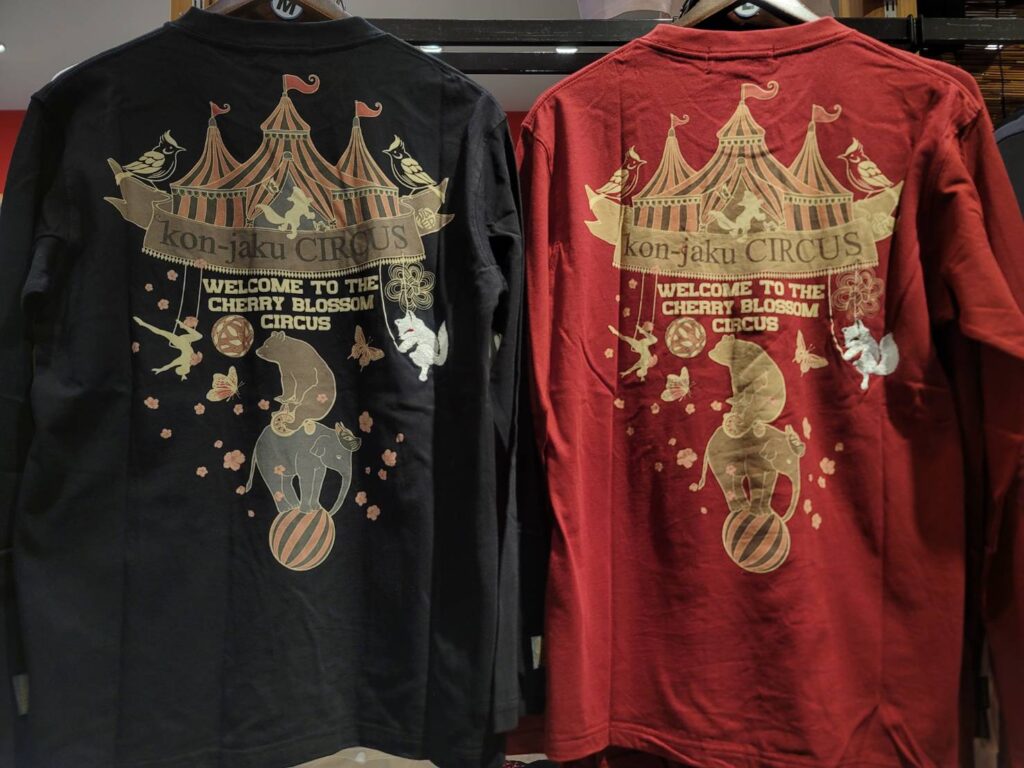 【今昔】より、桜が舞う中でも行われるサーカスがデザインされた長袖Tシャツが登場