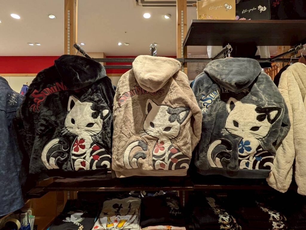 大きく背中にデザインされたスミネコが目を惹きます。男女ともに着ていただける仕上がりになってます