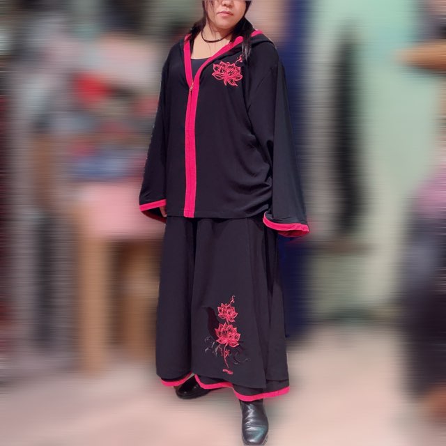 【雅結-EN-】八咫烏と蓮刺繍変形ワイドパンツ