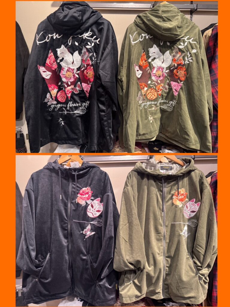 どちらも今昔らしさ満載の総刺繍アウター!