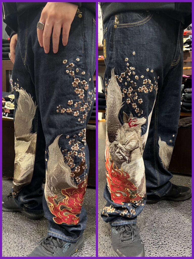 両足にガッツリ刺繍のデニムパンツ!
