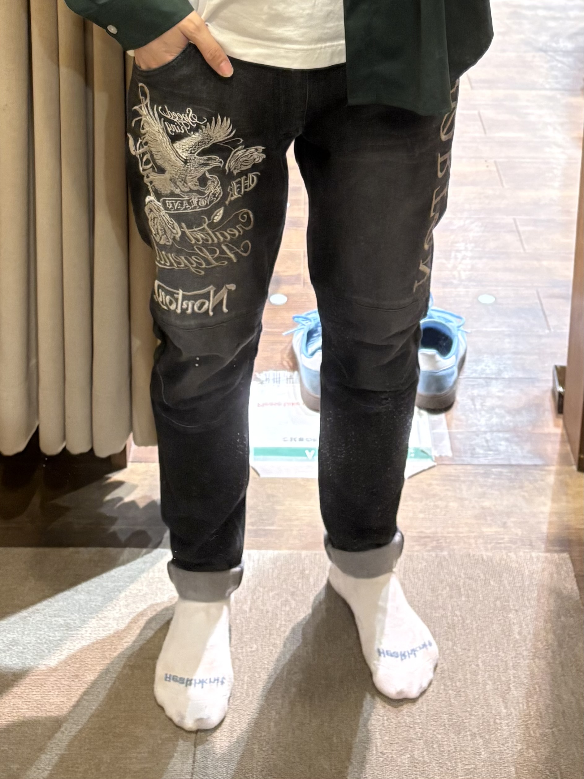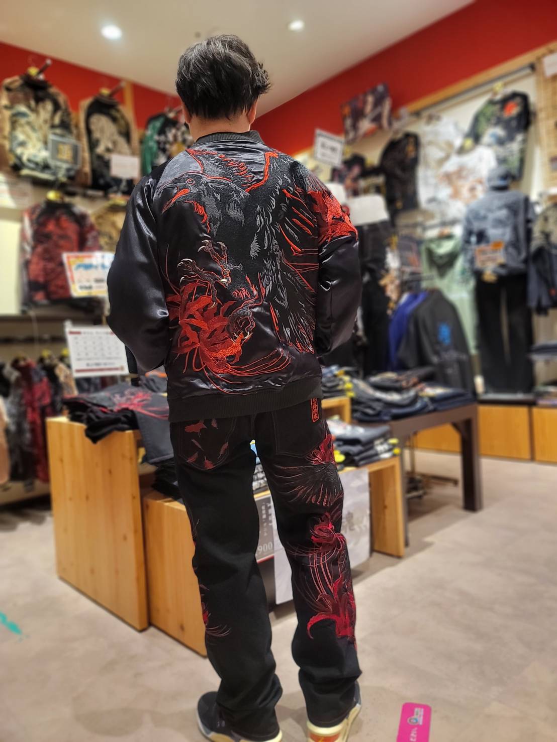 【絡繰魂・粋】八咫烏と彼岸花総刺繍デニムパンツ